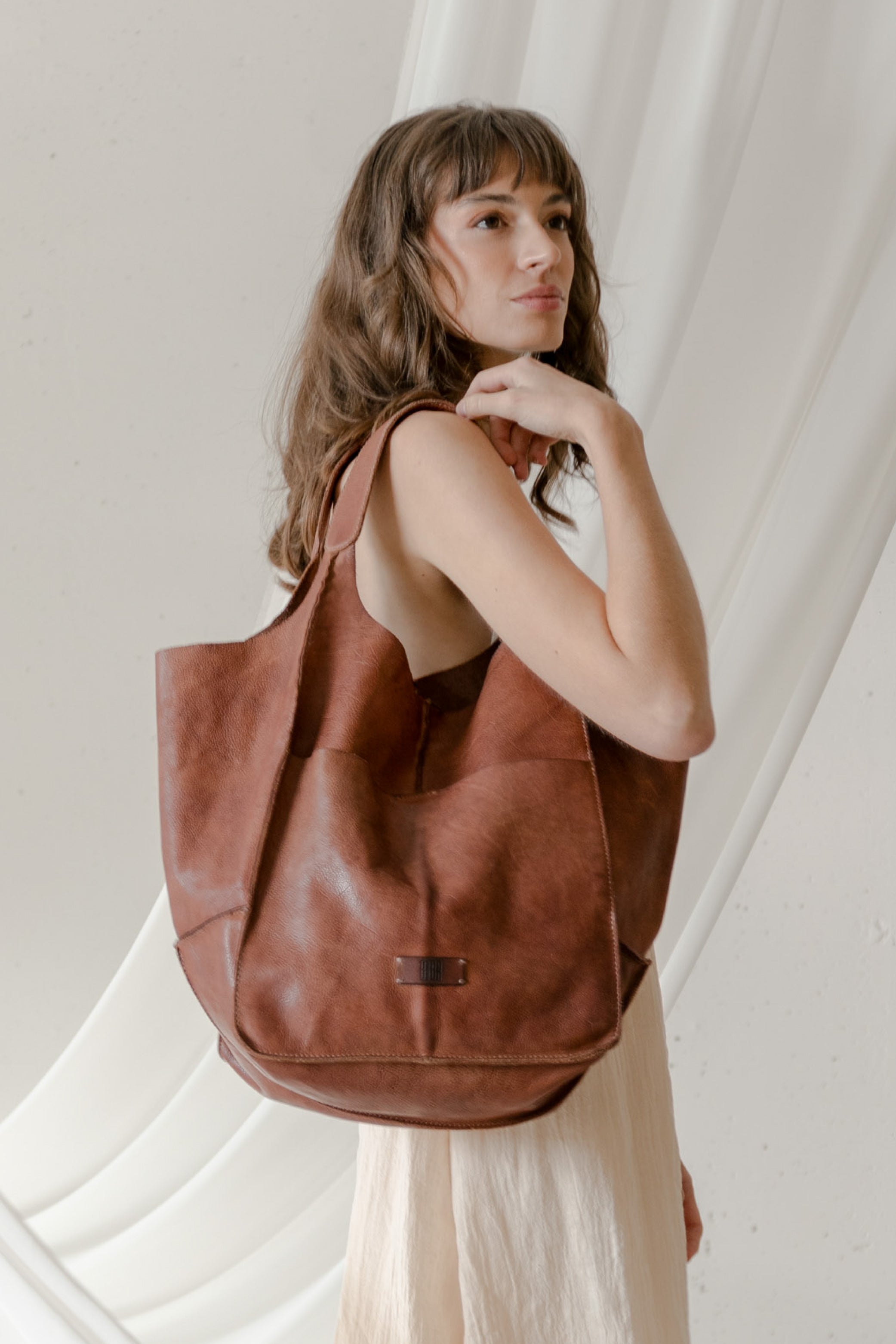 MAISON FANLI - Vertical Leather Tote Bag - Solid