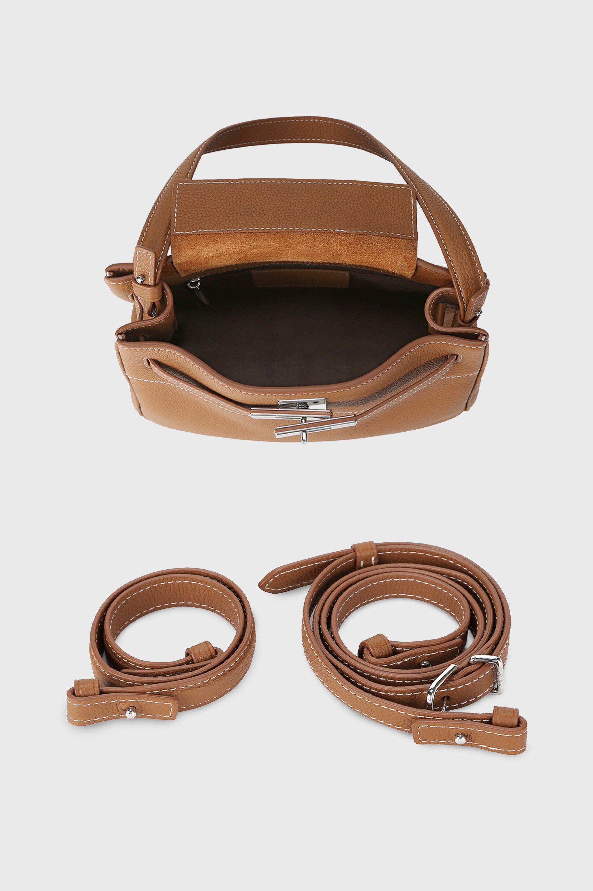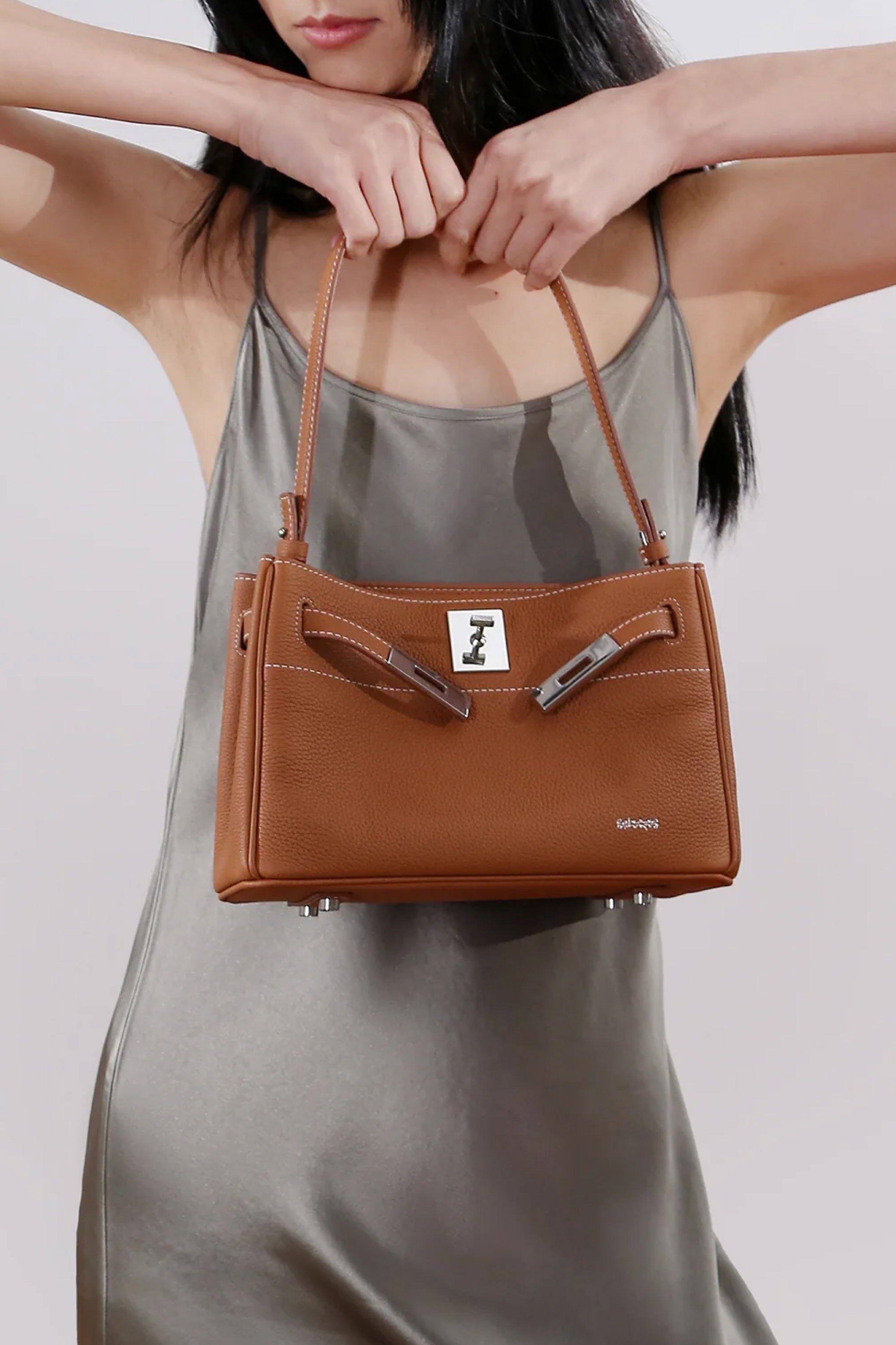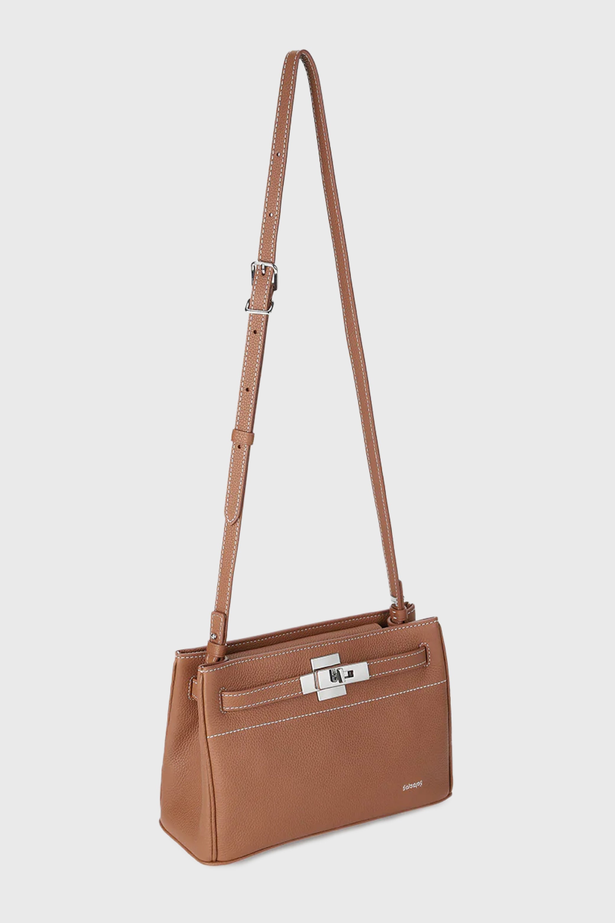 The SAOIRSE Soft Structural Belt Tote II Mini: where elegance meets everyday versatility. Crafted in exquisite pebble grain cow leather, this mini belt bag is a testament to subtle sophistication. Its unique top lip closure, secured by a hidden magnetic button, ensures your belongings are safe while adding an element of surprise. The front belt strap, complete with a classic buckle, adds a touch of grace to its design.