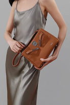 Inside, organization is effortless with a zip and slip pocket, ensuring your essentials are always within reach. The interior is lined with soft suede cloth, making it a pleasure to reach into. Flexibility is at its core, with a detachable and adjustable shoulder strap, allowing you to style it as you please - carry it in your hand for a statement, on your shoulder for a relaxed look, or across your body for hands-free ease. This mini tote is not just an accessory; it's a companion for the dynamic woman on the go.