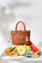 Washed, vegetable-tanned, and hand-braided cowhide leather bag-in-bag basket. Handles, adjustable and removable shoulder strap. The internal case is made of cotton, closes with a zipper, has internal pockets, and is fastened to the bag with buttons.
