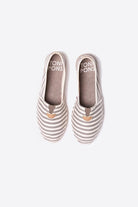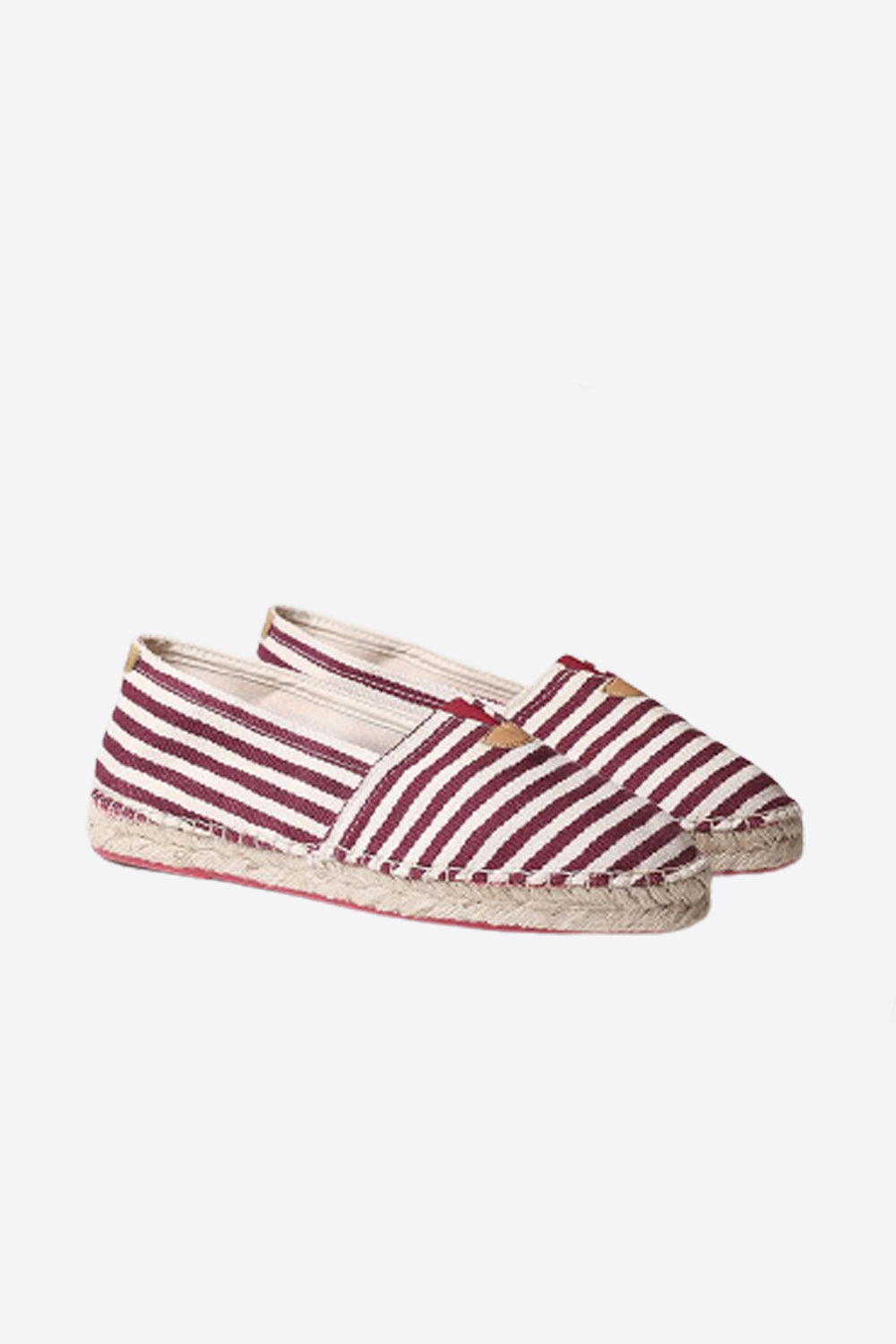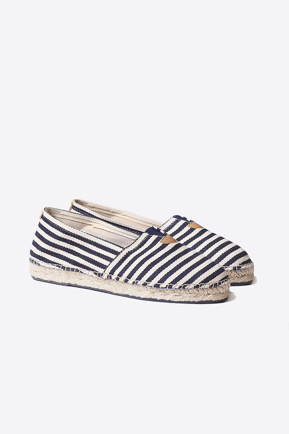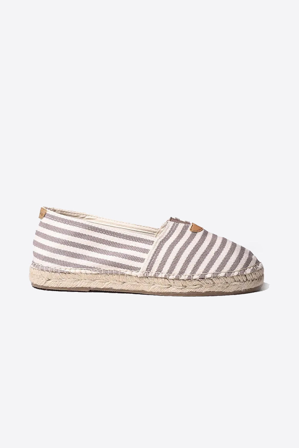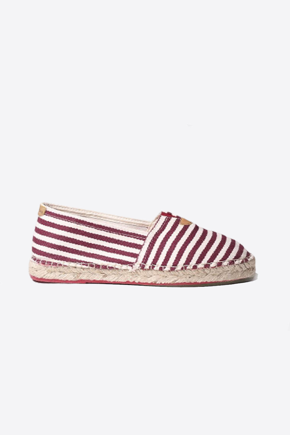 BLANES-DD This unisex espadrille is made from cotton fabric. The sole is flat and made of jute and the base in non-slip rubber. The inner sole is made of jute with a fabric lining. This design is hand-stitched in Spain. The cushioned insole and front elastic create a perfect fit. It is a 100% vegan espadrille.