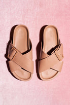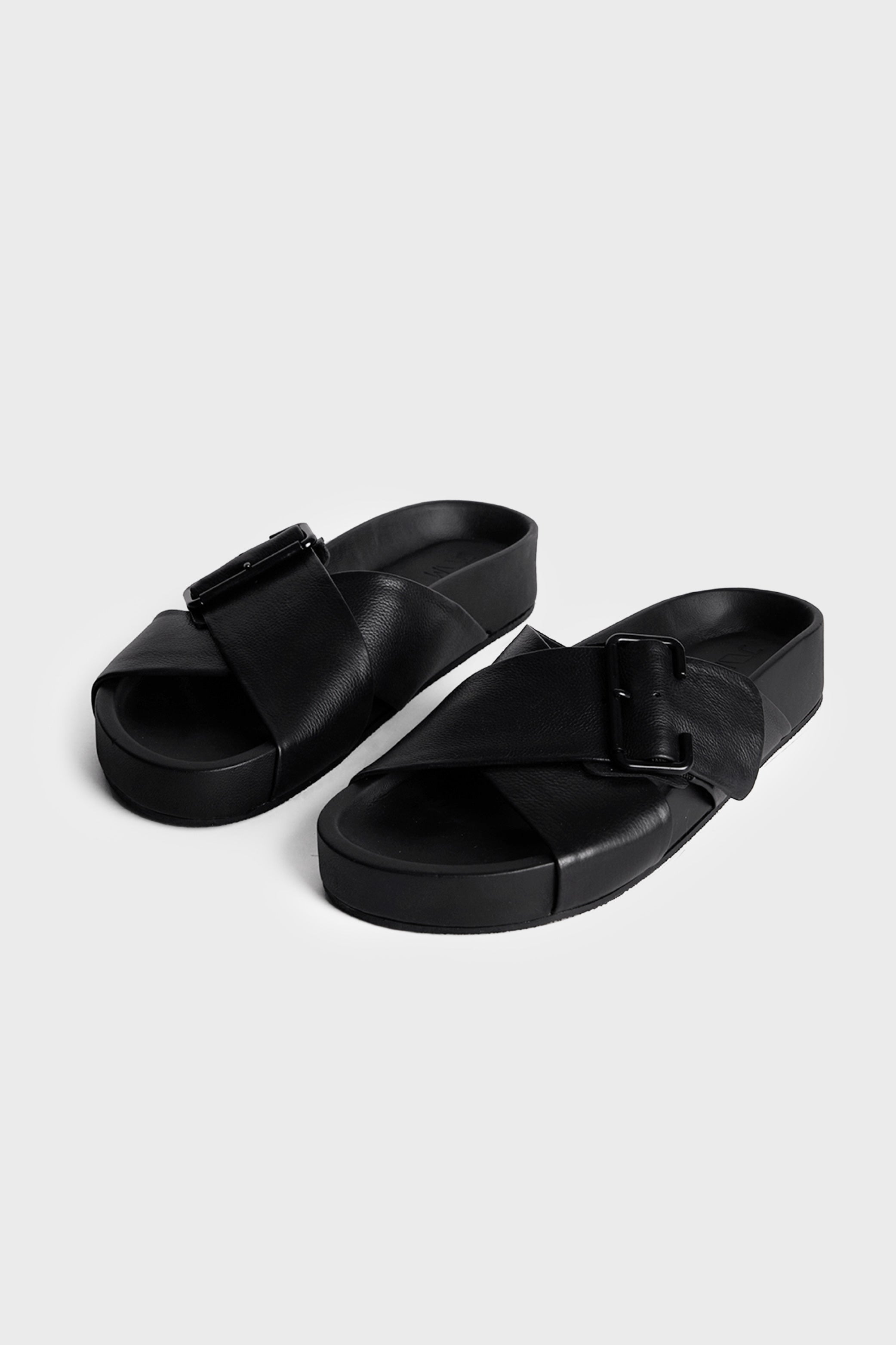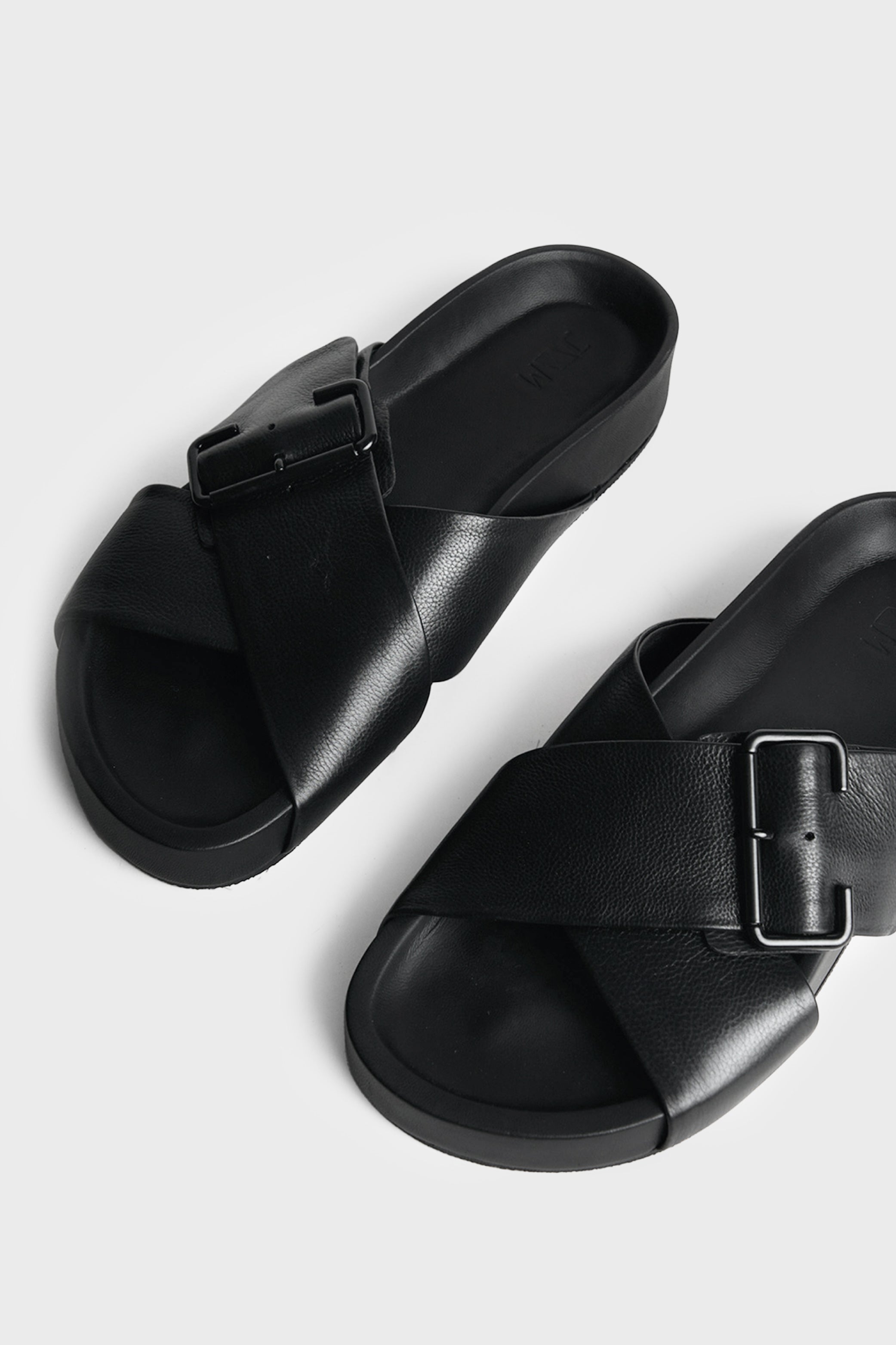 Effortless and versatile, these sandals feature wide criss-cross straps with bold buckle details for a modern edge. Designed for all-day comfort while adding a polished touch to your everyday style.