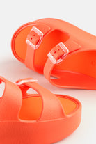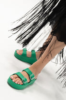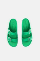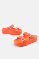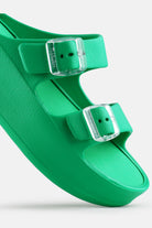 Summer is here and your toes are out. Slip into a pair of colourful double-buckle sandals and you're set for fun. With a 5cm platform heel, a comfortable insole and adjustable buckles, these sandals will adapt to your plans wherever you go. Produced in Portugal with only vegan and lightweight high-quality materials, and powered exclusively by renewable sources of energy.