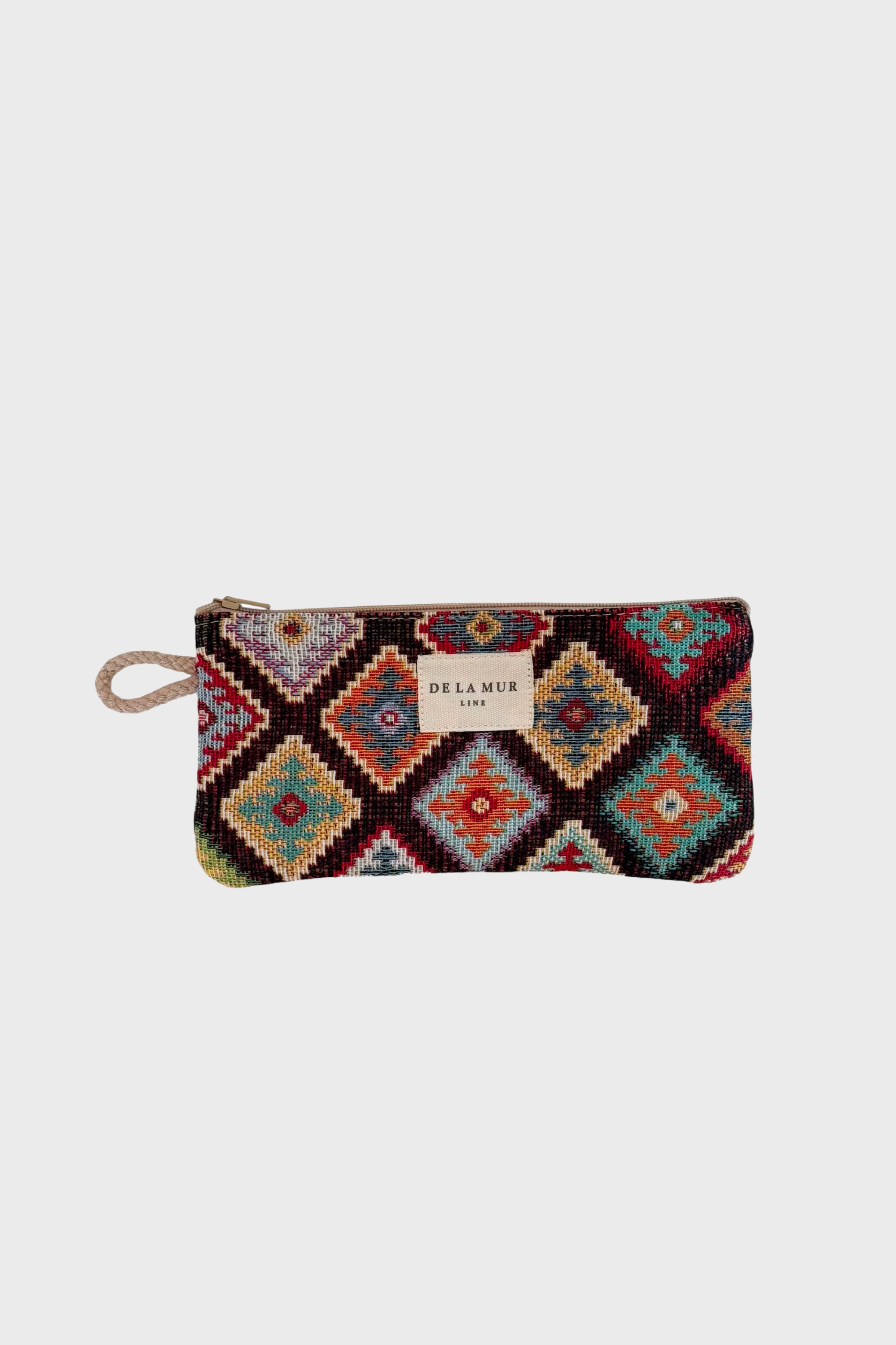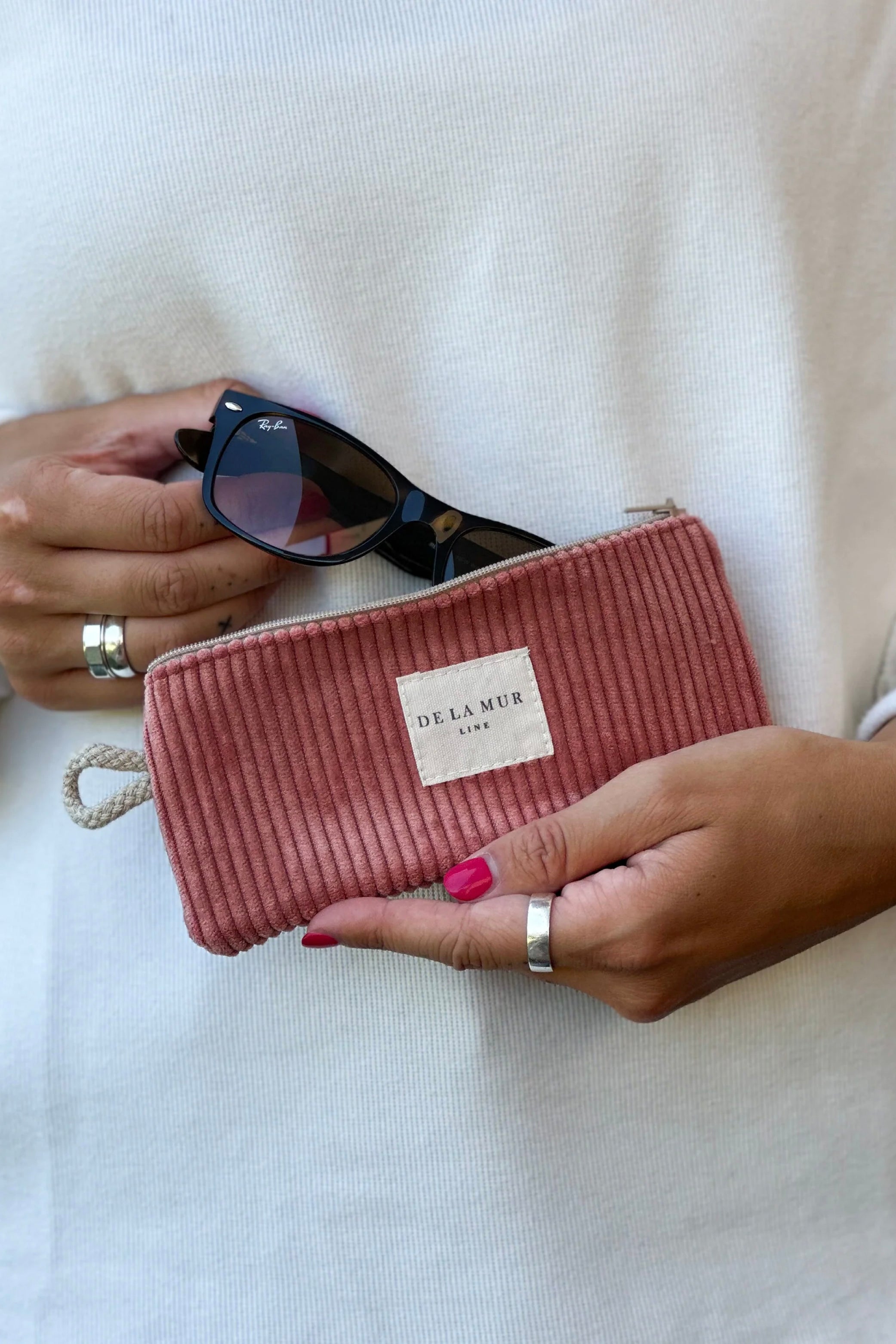 Glasses case with a zipper at the top and a small cord handle on the side. Made from thick corduroy & jacquard fabric. Each item may have slight variations in the pattern, depending on where the fabric was cut. Lined with thick fabric on the inside. For proper care, hand wash in cold water and do not tumble dry.