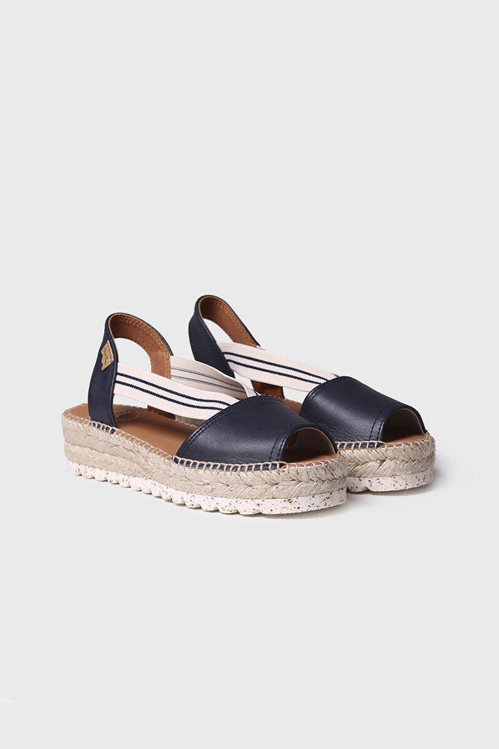 ESTEL-SW This women's leather espadrille is made in plain colours. The jute and EVA wedge have a total height of 4 cm. Two elasticated side straps provide optimum support for the foot. The insole is lined with leather for comfort. This design is hand-stitched in Spain.
