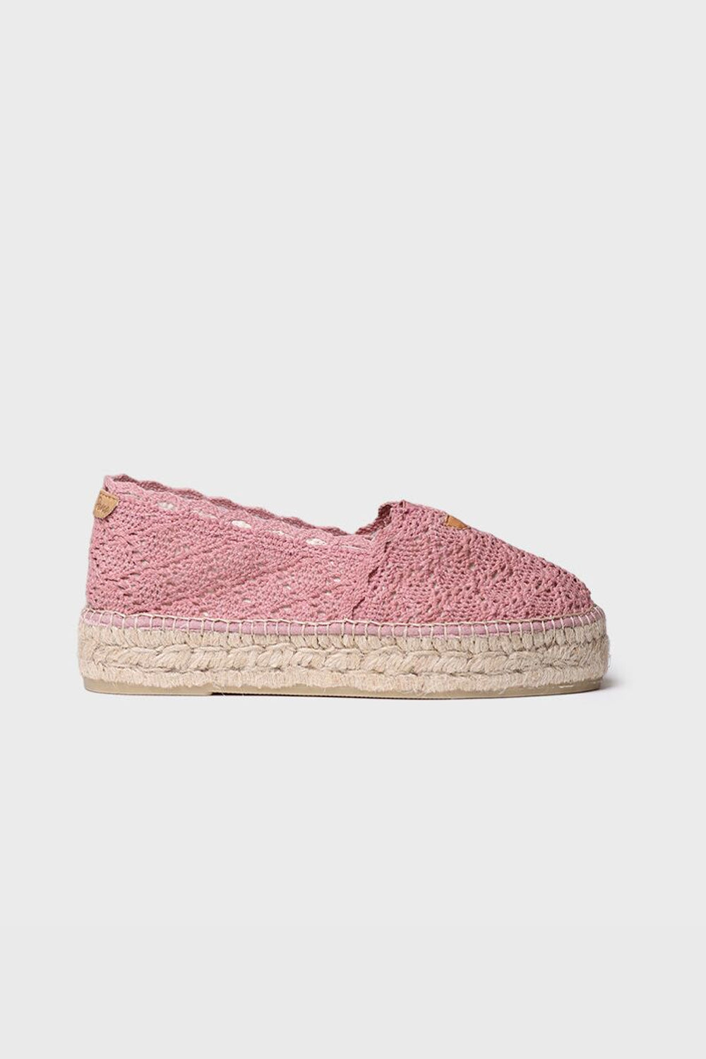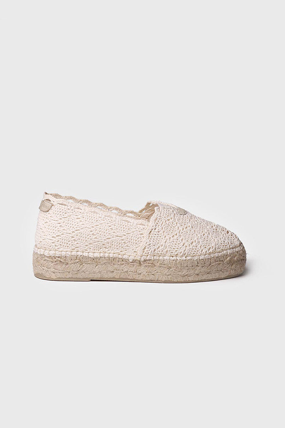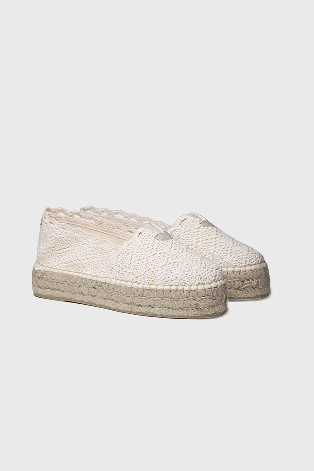 AITANA These crocheted flat espadrilles are made from cotton. The jute sole is 3.5 cm, and the insole is lined with cotton fabric. The base of the sole is made of non-slip rubber. It is a closed shoe with an elasticated front for maximum comfort. This product is 100% vegan.