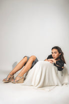 Mixed leather and jute sandal with rubber sole and jute platform.