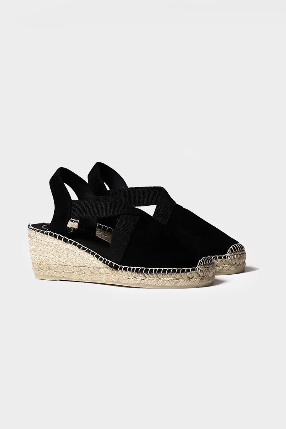 TONA This women's espadrille is made from suede with breathable fabric lining. The jute wedge has a total height of 6 cm, of which 4 cm is part of the heel and 2 cm of the platform. The base of the sole is made of non-slip rubber. The inner insole is lined with suede. It has two contrasting elasticated bands for a perfect fit. This design is hand-stitched in Spain. This model fits true to size; if you are between two, we recommend choosing the larger size.