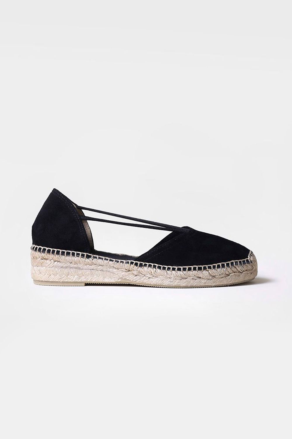 ERLA A This women's espadrille in suede is made in plain colours. The jute wedge has a total height of 3.5 cm. The base of the sole is made of non-slip rubber. The insole is lined with fabric for added comfort.This design is hand-stitched in Spain.It has two elastic straps that provide a perfect fit for the foot. This model fits true to size; if you are between two, we recommend choosing the larger size.