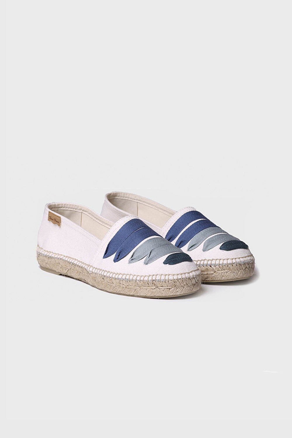 ROSE-CM This women's espadrille flat with contrasting ribbons is a closed model. Made of cotton fabric and 1.5 cm jute sole. The inner sole is lined with fabric for excellent comfort. The base of the sole is made of non-slip rubber. This design is hand-stitched in Spain. This product is 100% vegan. This model fits true to size; if you are between two, we recommend choosing the larger size.