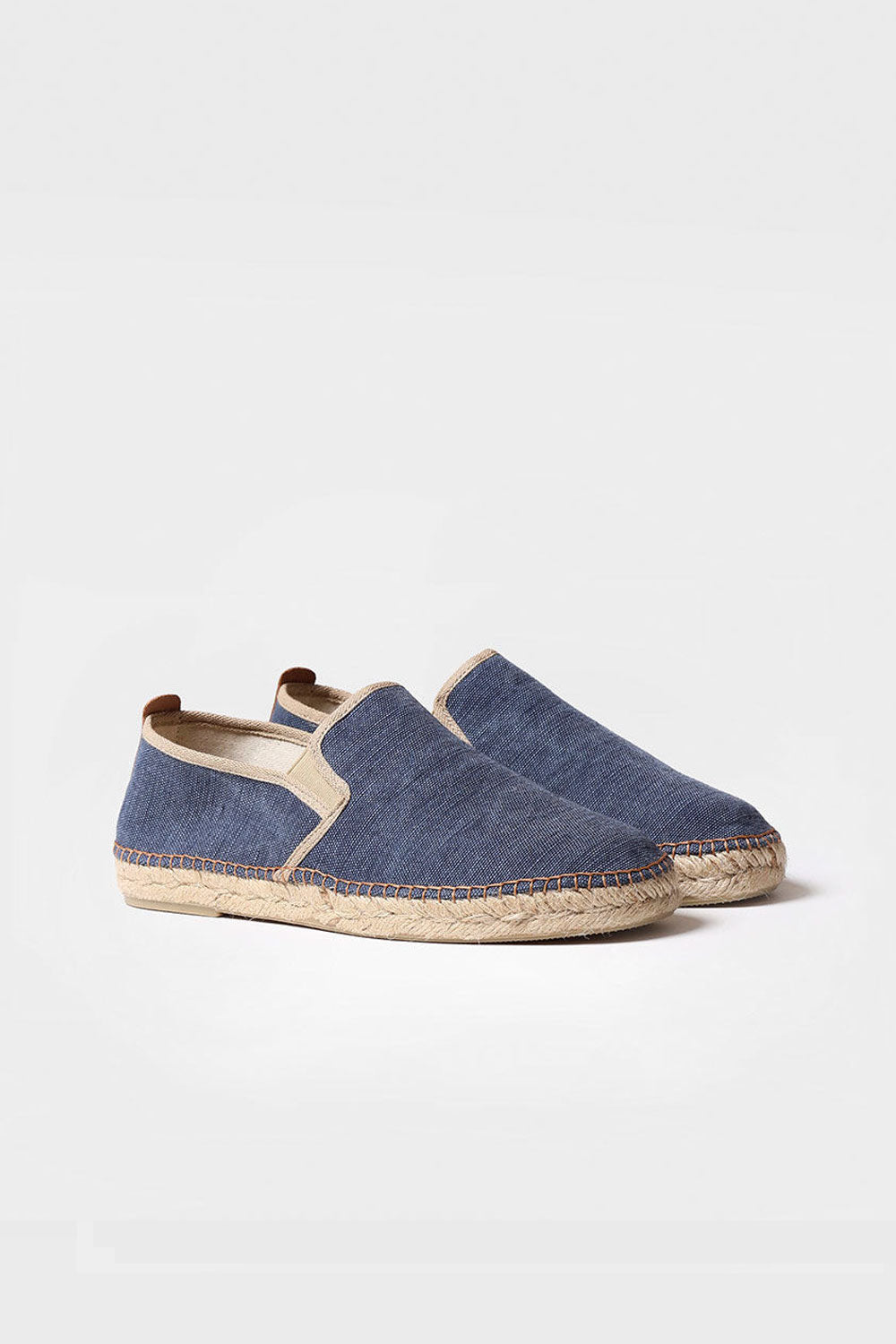 DALLAS by TONI PONS . Men's flat espadrilles made of plain fabric with a jute and rubber sole. This style stands out for its simplicity and elegance, with a fabric-lined insole for added comfort. Its handcrafted construction with cotton thread ensures durability. Available in various shades, such as the elegant dark blue espadrille , they are perfect for a casual and comfortable look for any occasion.