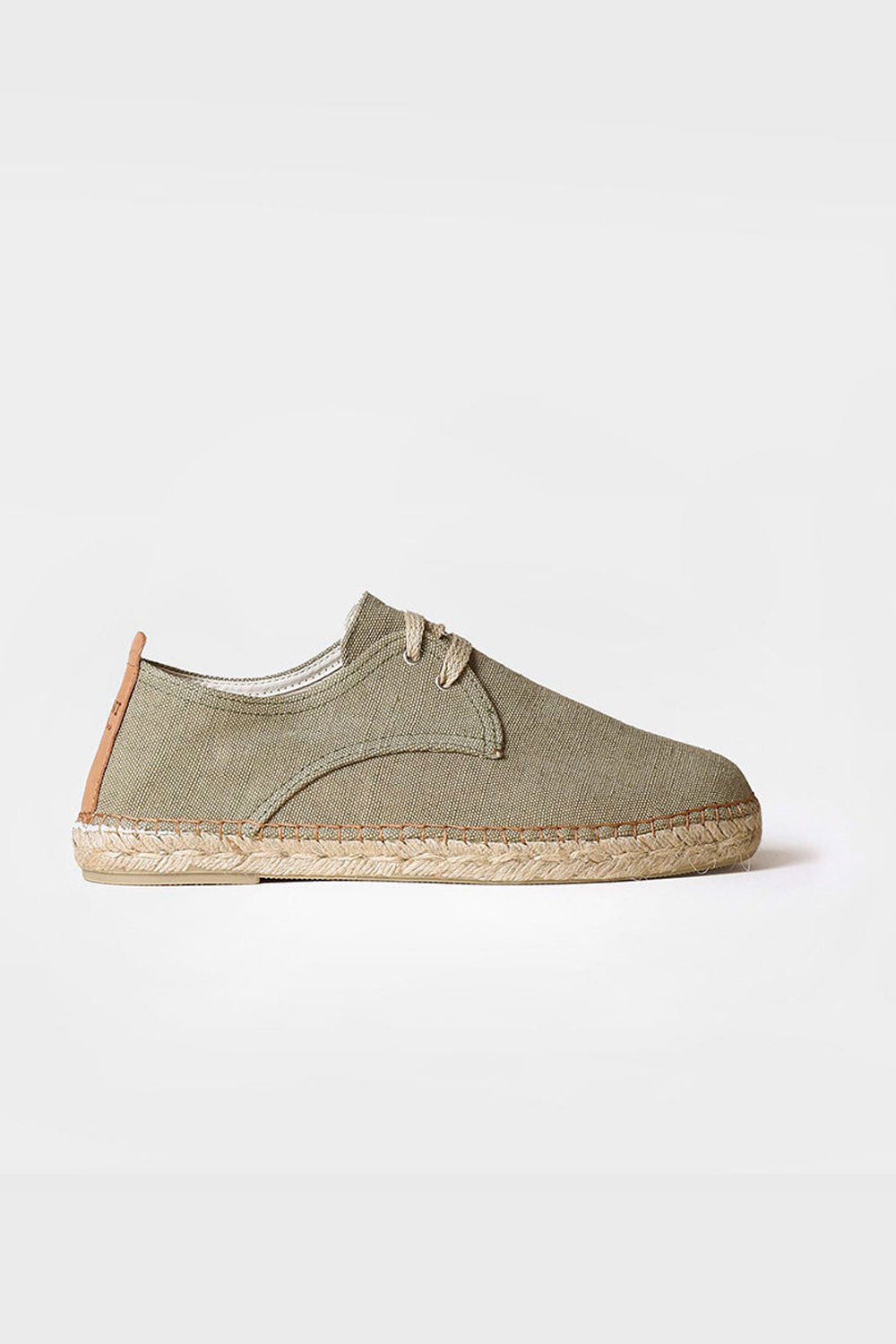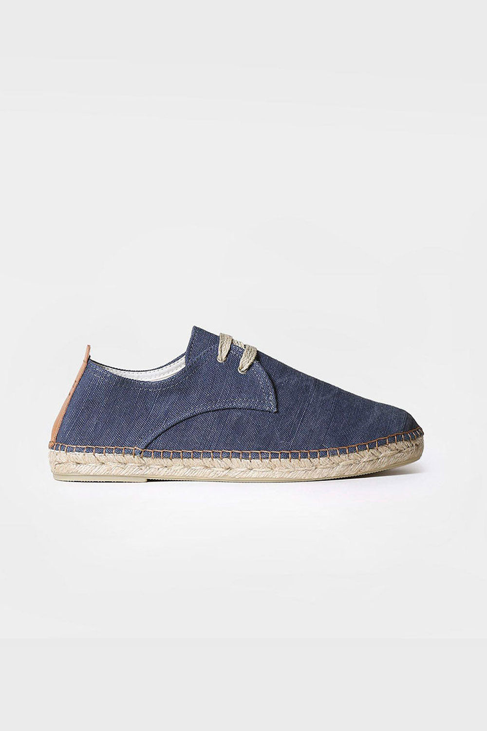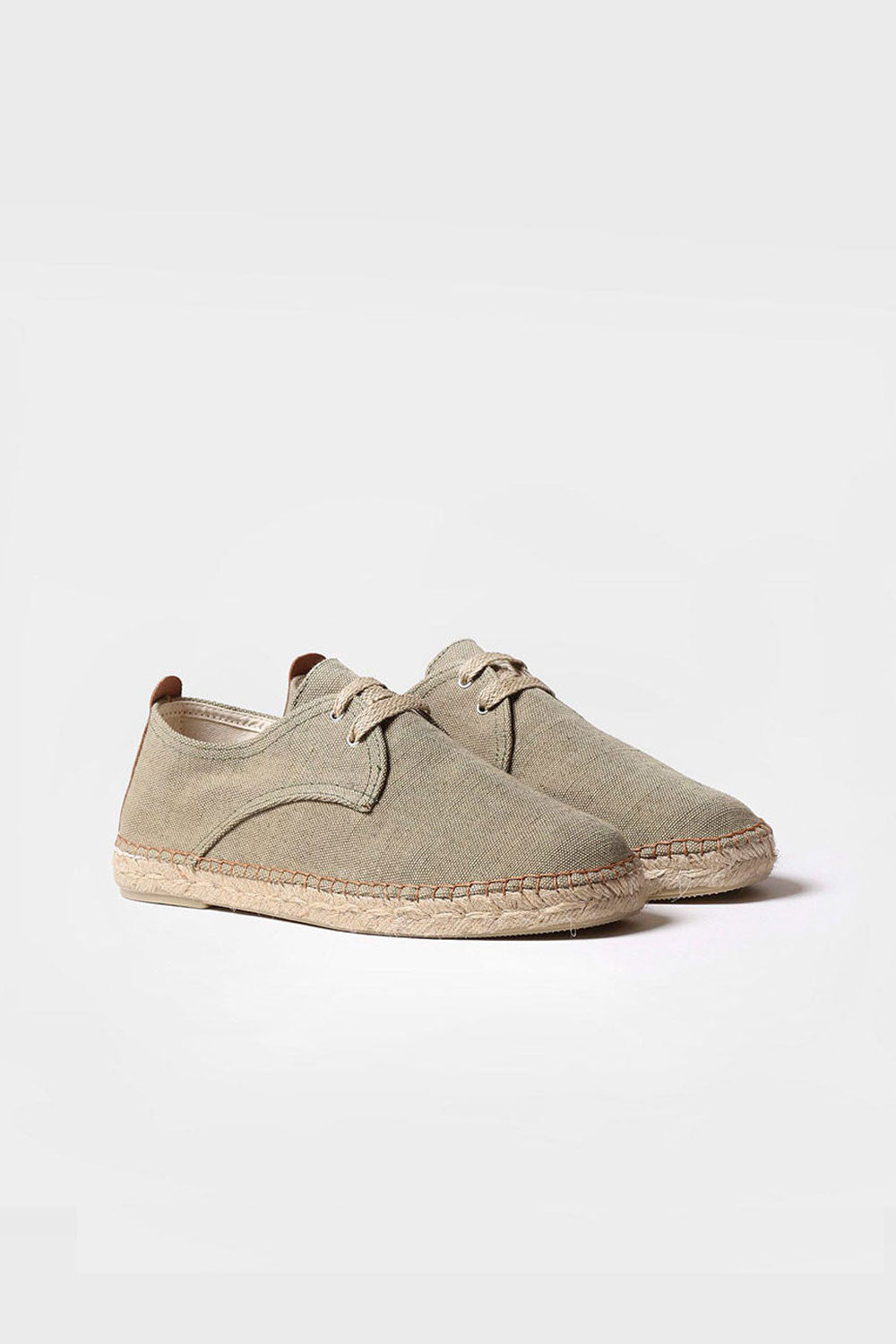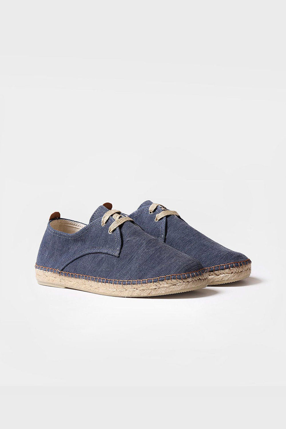 DIXON: Men's Colombian lace-up espadrilles, ideal for any occasion. This lace-up espadrilles style is designed with a plain fabric in washed tones, offering comfort and style. The flat outsole is made of jute and rubber, ensuring durability and grip. The fabric-lined insole provides a comfortable walking experience. Additionally, the fabric and sole are hand-stitched with cotton thread, ensuring the quality and durability of these espadrilles.