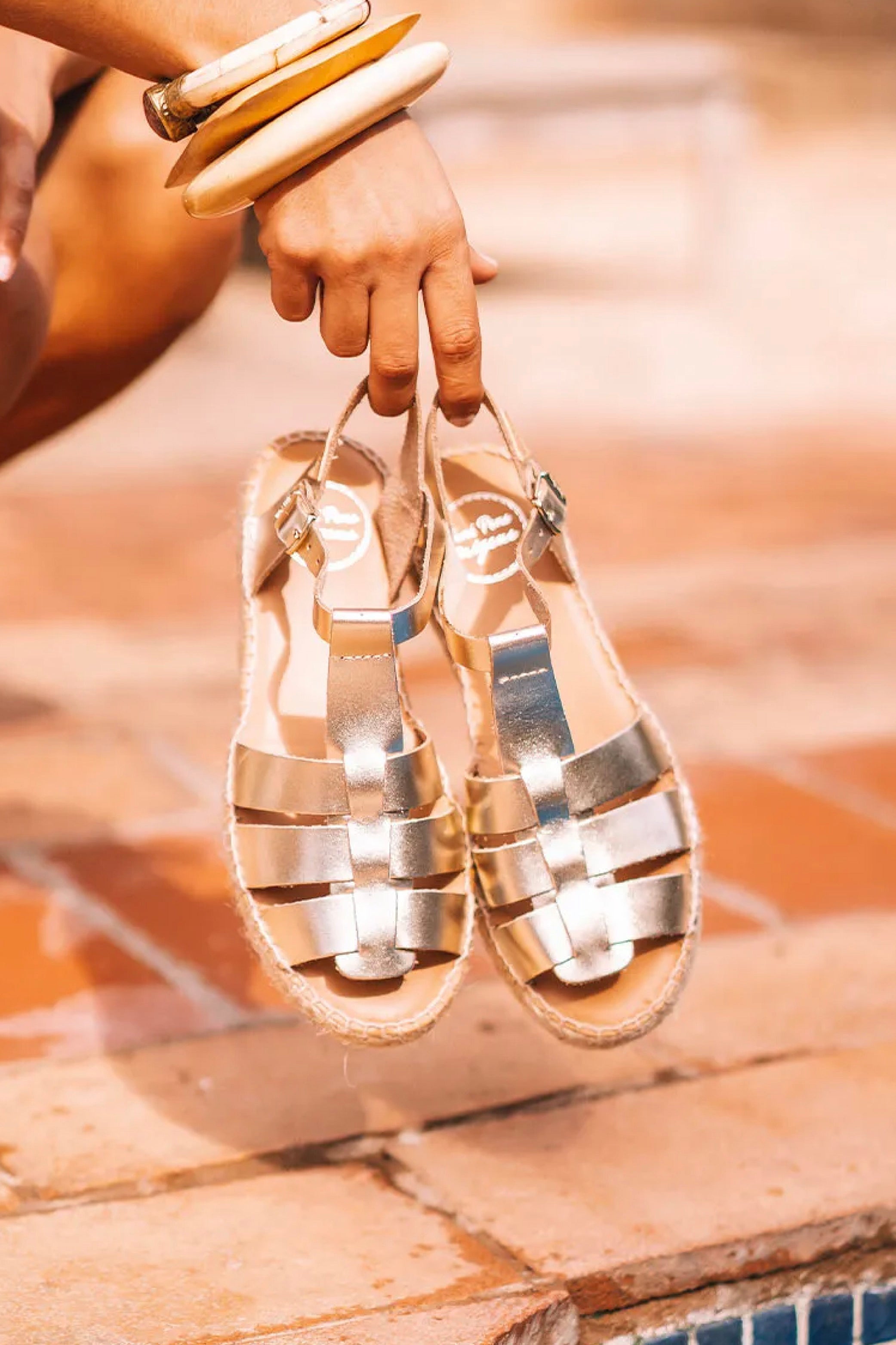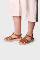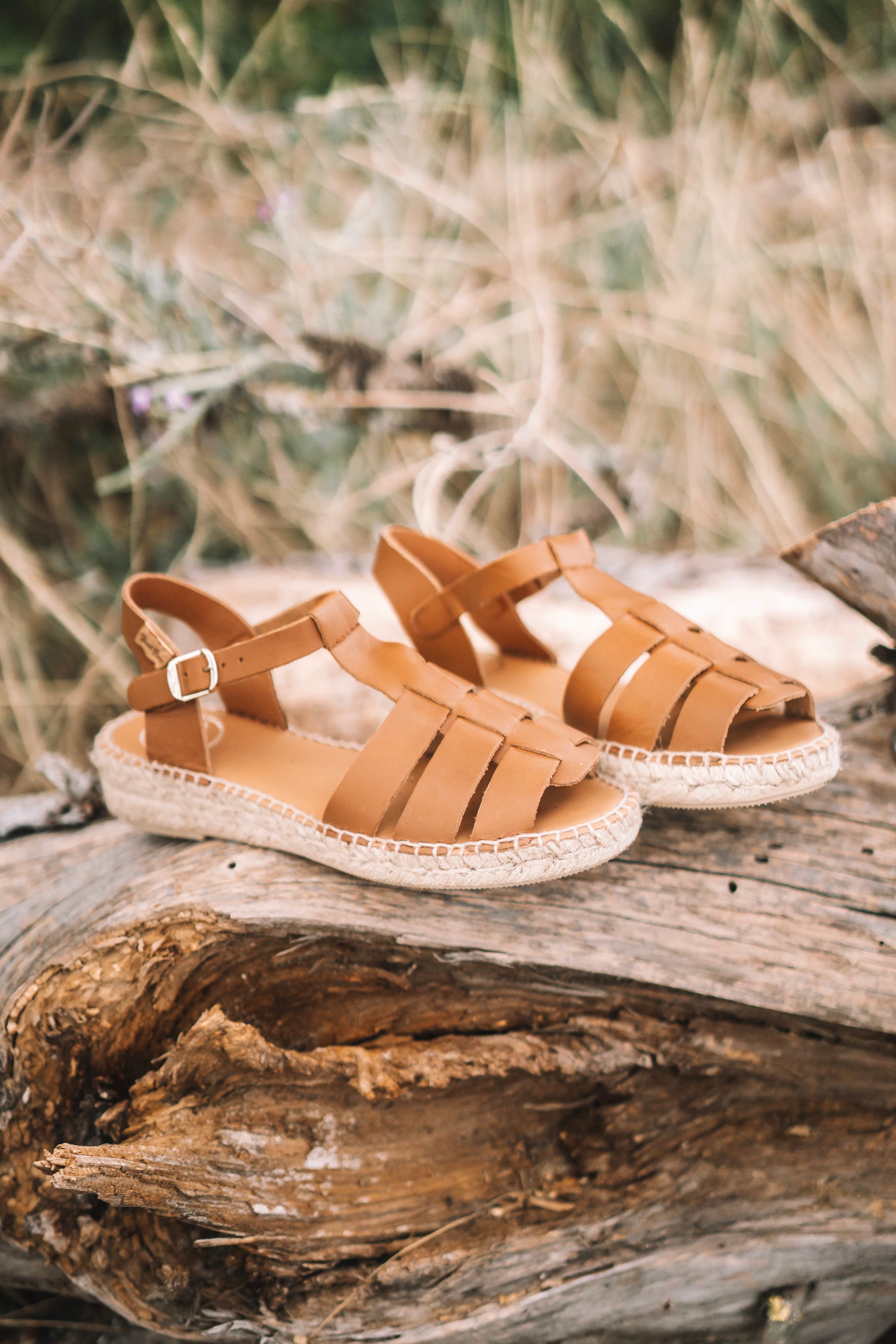 EMMA. These fisherman sandals are made from leather. The jute wedge has a total height of 3.5 cm. The base of the sole is made of non-slip rubber, and the insole is lined with leather for comfort. It also has an adjustable buckle fastening to fit the foot better. This design is hand-stitched in Spain. This model fits true to size; if you are between two, we recommend choosing the larger size.
