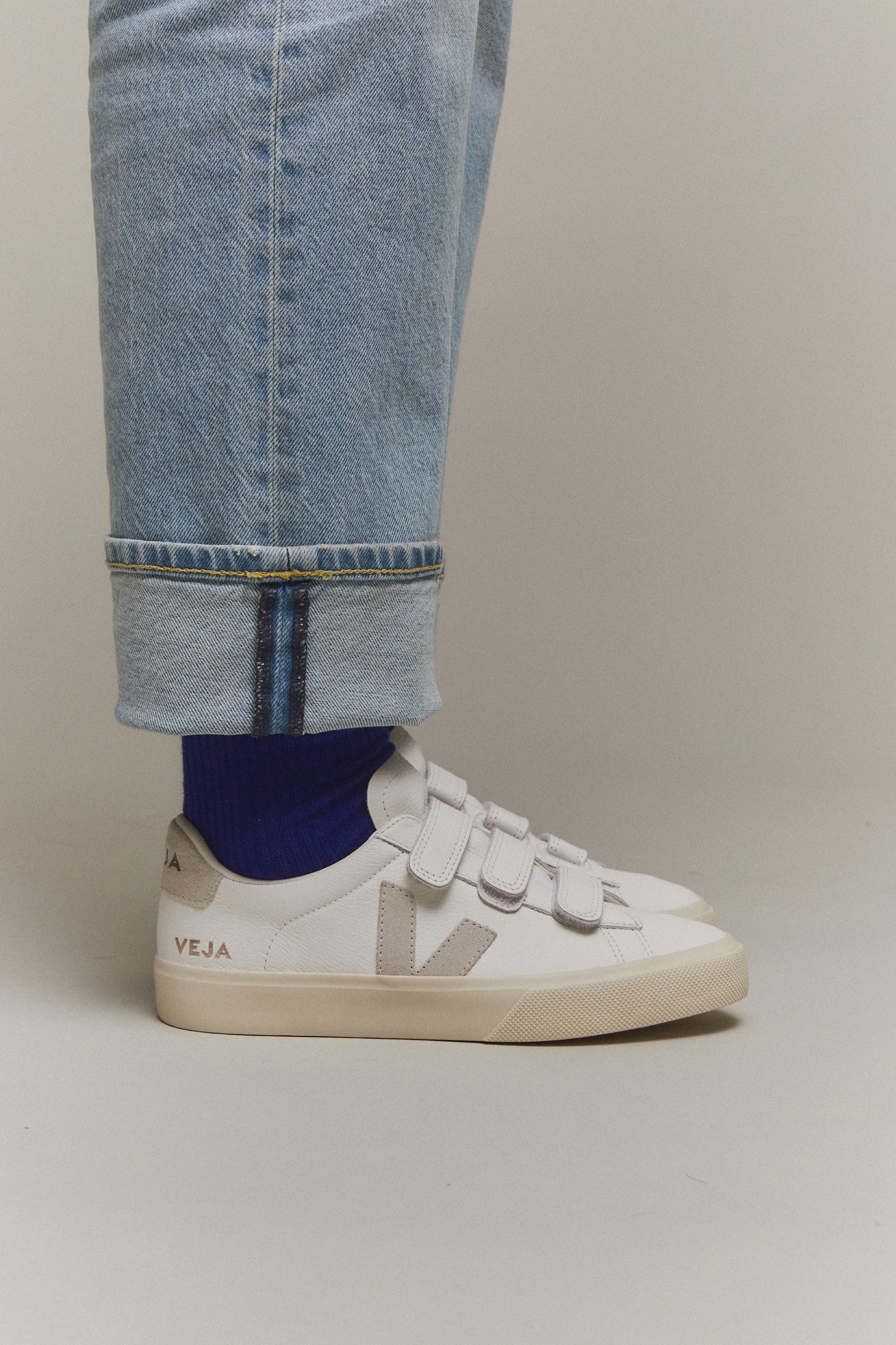 Since 2005, VEJA has been creating sneakers in a different way, mixing social projects, economic justice, and ecological materials. Uses Brazilian and Peruvian organic cotton for the canvas and laces, Amazonian rubber for the soles, and various innovative materials made from recycled plastic bottles or recycled polyester.