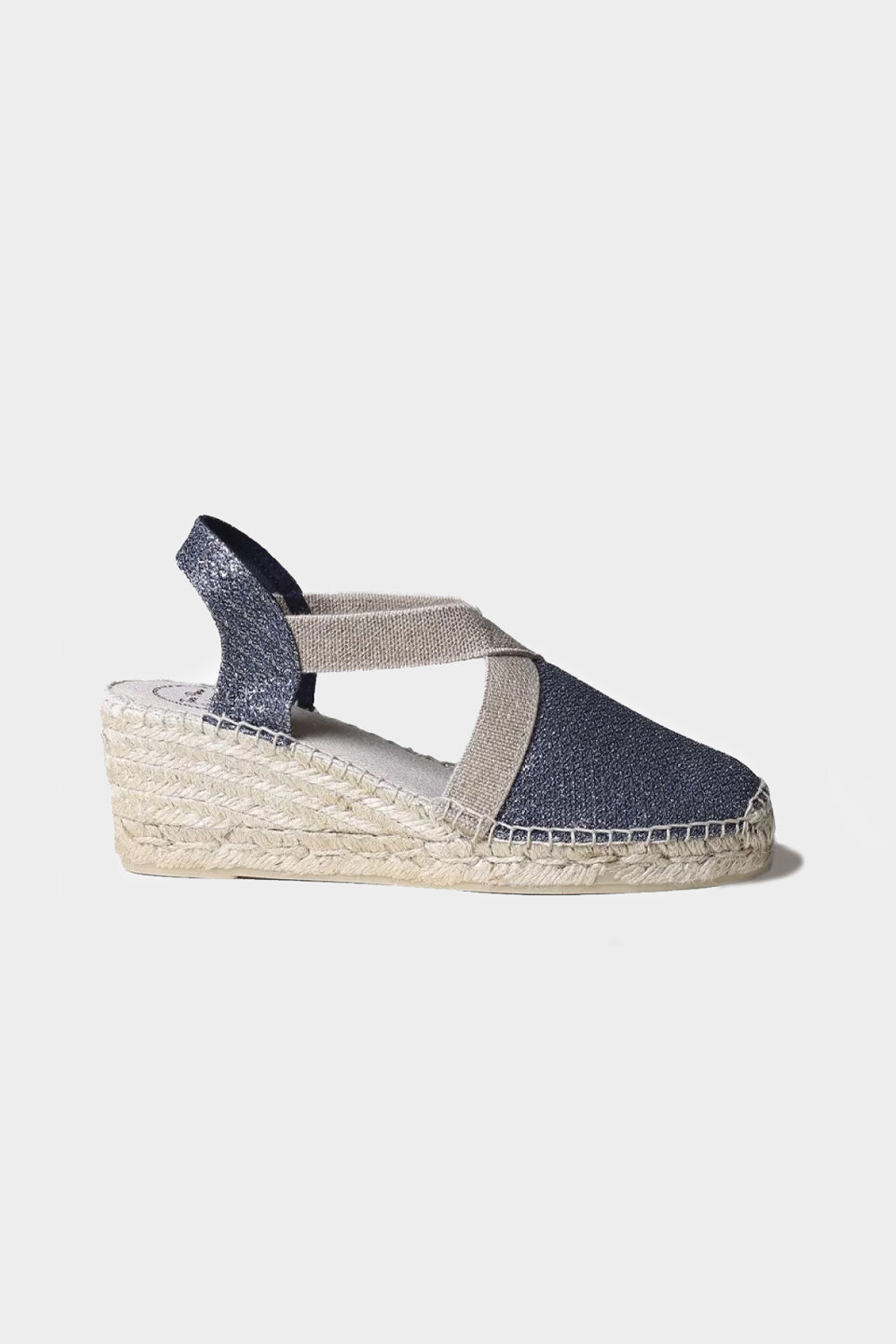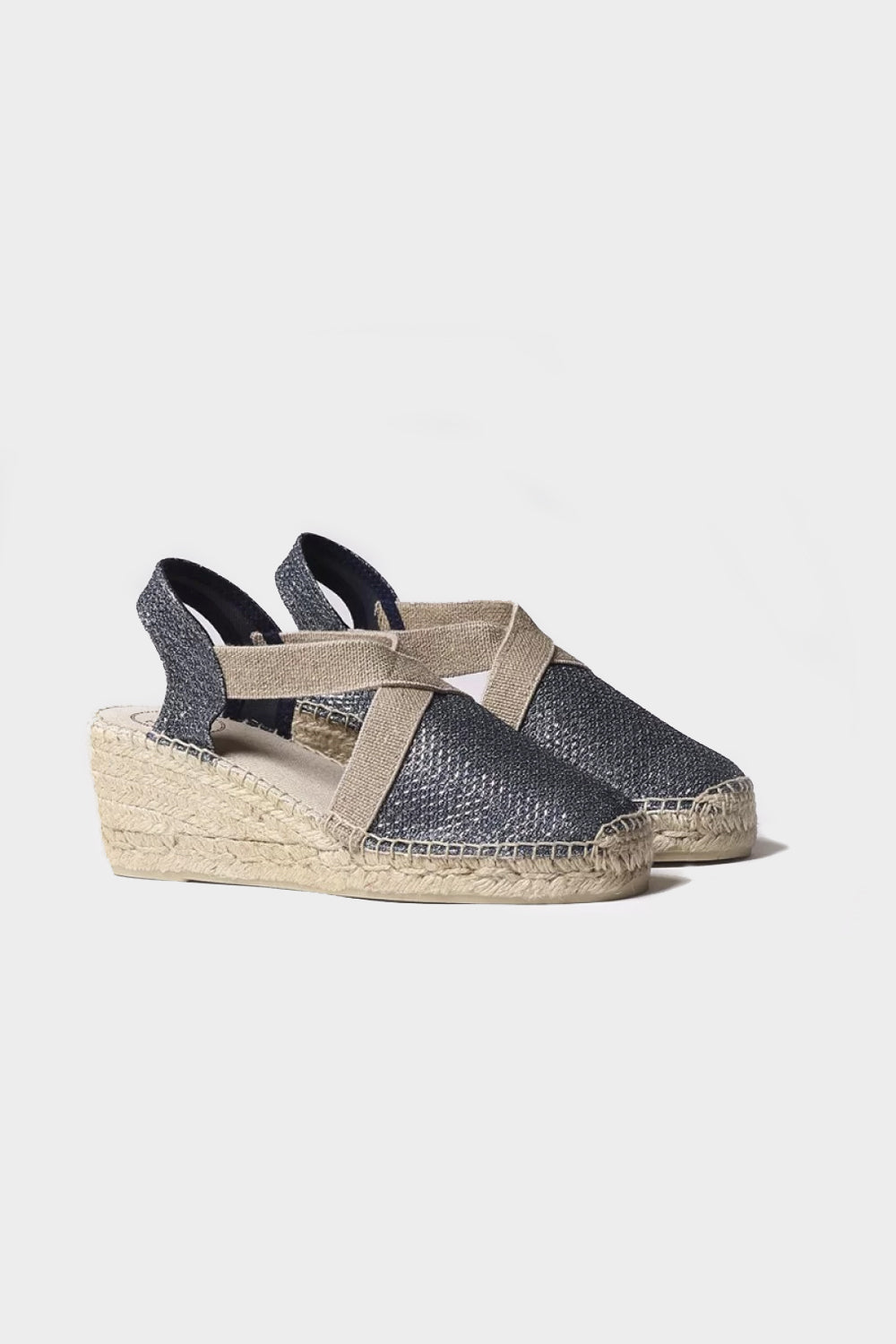 TRITON This women's espadrille is made from cotton fabric with a shiny finish. The jute wedge has a total height of 6 cm, of which 4 cm is part of the heel and 2 cm of the platform. The base of the sole is made of non-slip rubber. The inner insole is lined with fabric. It has two elastic bands for a perfect fit to the foot. This design is hand-stitched in Spain. This product is 100% vegan. This model fits true to size; if you are between two, we recommend choosing the larger size.